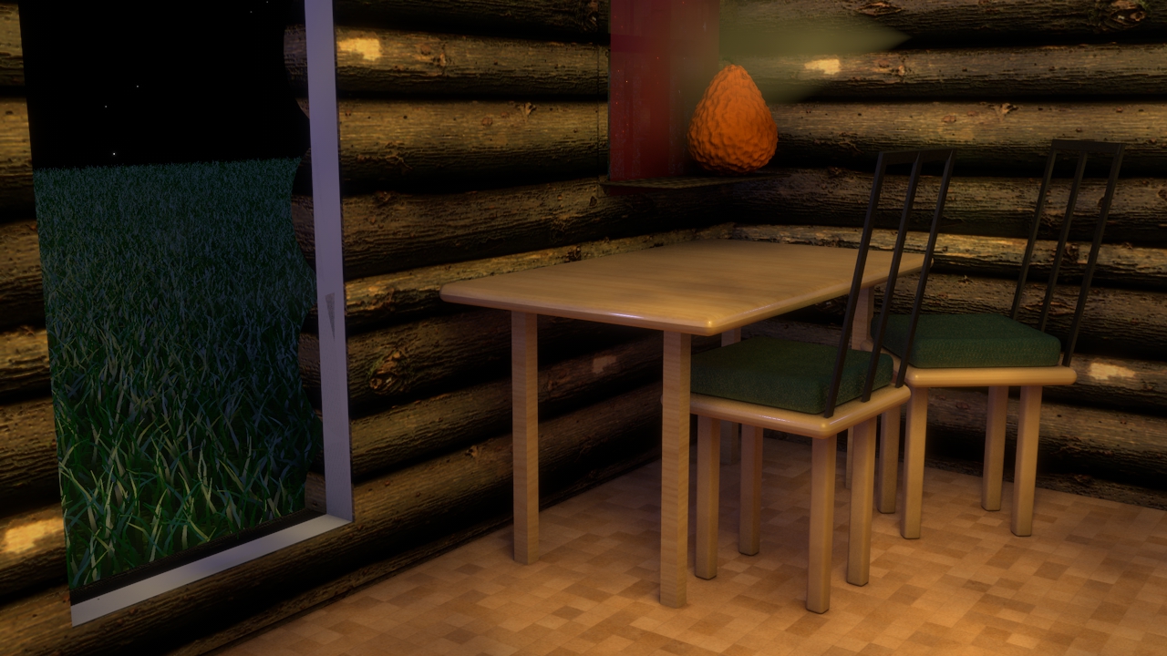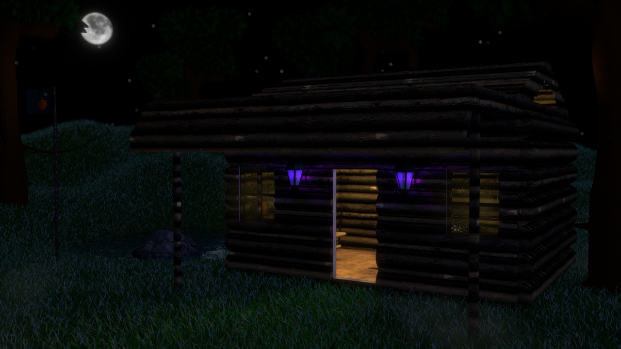 -Hütte mit Holzverkleidung (halbierte Baumstämme)